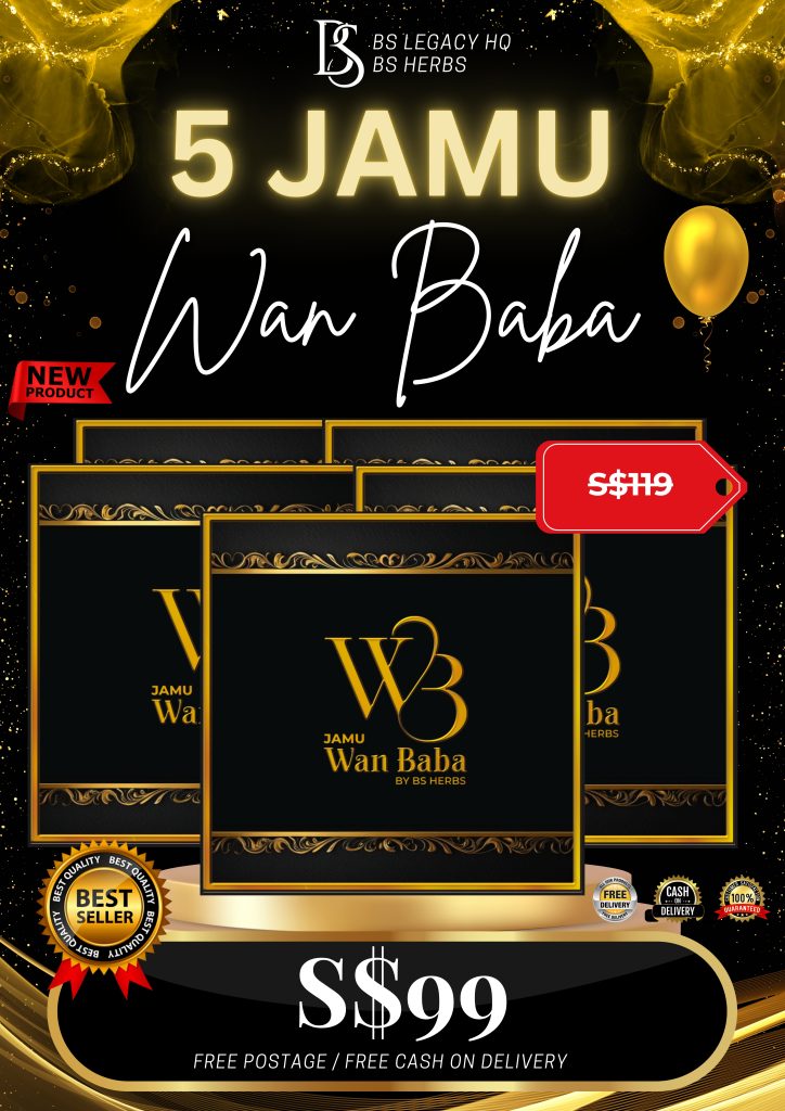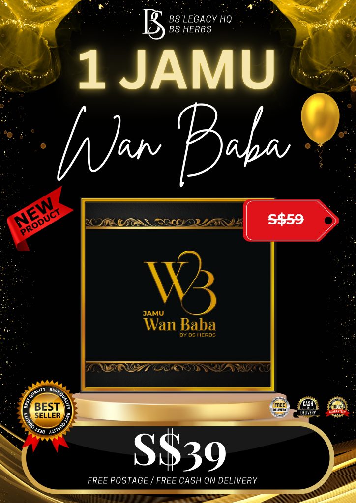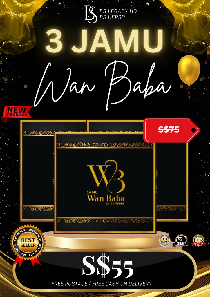 Jamu Wan Baba, diperkenalkan sejak tahun 2016, adalah formula tradisional yang dihasilkan dengan gabungan herba berkualiti tinggi. Diformulasi khusus untuk menyokong kesihatan dalaman, meningkatkan tenaga, serta membantu kesejahteraan tubuh secara menyeluruh